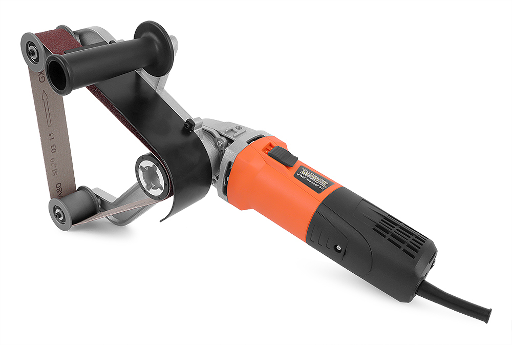 Мощность 1300Вт, 220В. Количество роликов 3. Длина ленты 760мм, ширина 40мм. Линейная скорость — 3 -8,4 м/с. Плавный пуск. Плавная регулировка оборотов. Вес 3,8 кг.
