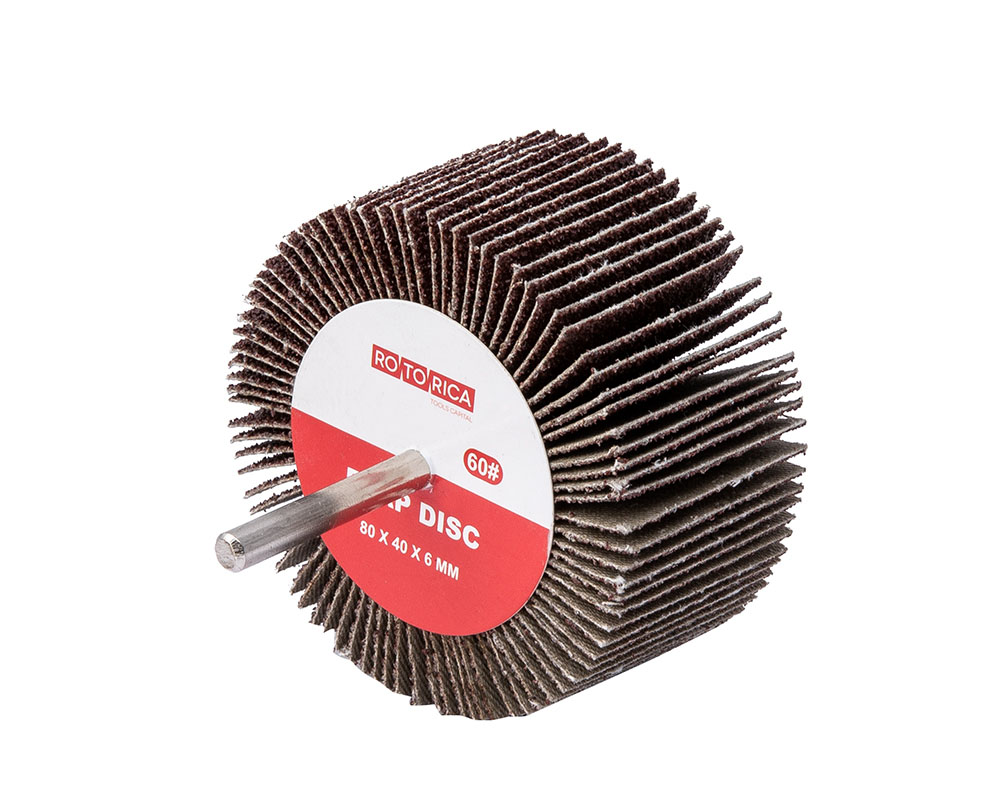 Диаметр 80 мм. Высота рабочей части 40 мм, Диаметр хвостовика 6 мм. Зернистость Р60.