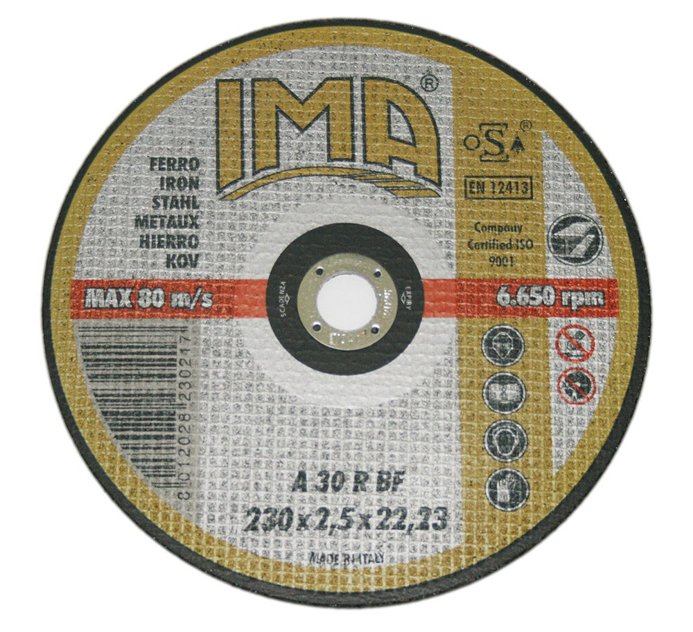 Серия СТАНДАРТ. Сделан из оксида алюминия, разработан для резки стальных конструкций. Диаметр 230мм, толщина 2,5мм, посадка 22,23мм. Зернистость P30. Прямой, тип 41. Используется для угловых шлифовальных машин 230мм.