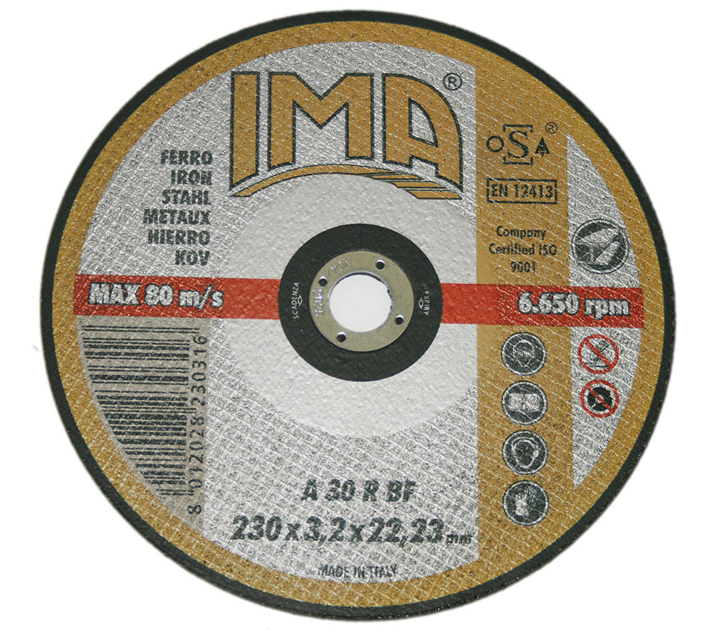 Серия СТАНДАРТ. Сделан из оксида алюминия, разработан для резки стальных конструкций. Диаметр 230мм, толщина 3,2мм, посадка 22,23мм. Зернистость P30. Прямой, тип 41. Используется для угловых шлифовальных машин 230мм.