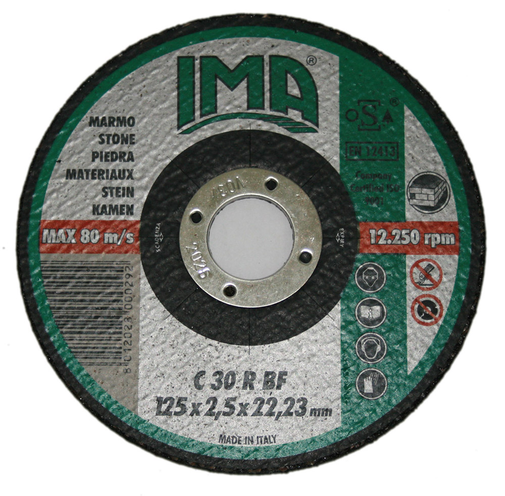 Серия СТАНДАРТ. Сделан из карборунда, разработан для резки камня. Диаметр 125мм, толщина 2,5мм, посадка 22,23мм. Зернистость P30. Прямой, тип 41. Используется для угловых шлифовальных машин 125мм.