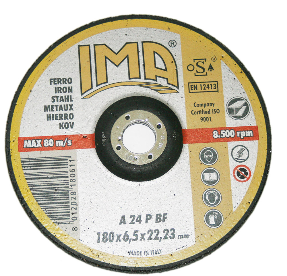 Абразивный шлифовальный диск IMA по металлу 180х6,6х22,23мм A24P изогнутый