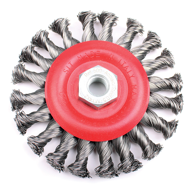 Дисковая щетка с крученной проволокой из стали. Диаметр 115мм, посадка М14. Проволока 0.5мм.