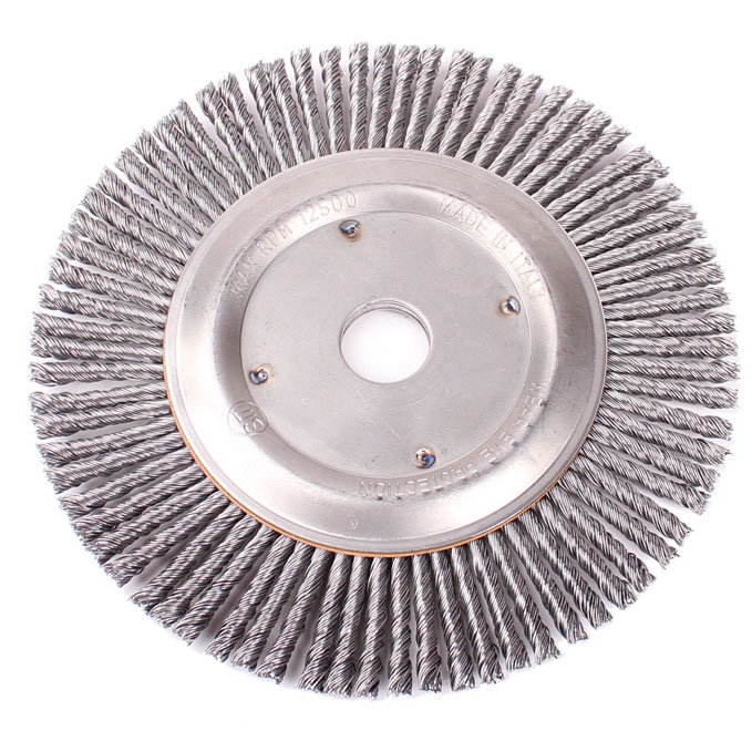 Дисковая щетка с крученной проволокой из стали. Диаметр 178мм (посадка 22.2мм). Диаметр проволоки 0.5мм. Длина проволоки 33мм.