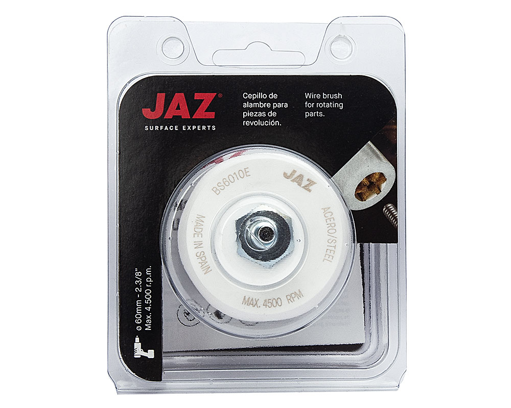 Проволочная щетка серии BS для цилиндрических деталей, труб и резьбовых соединений диаметром 10 мм. Хвостовик 6 мм. Латунированная стальная проволока 0,3 мм. Макс. обороты 4 500 об/мин.
