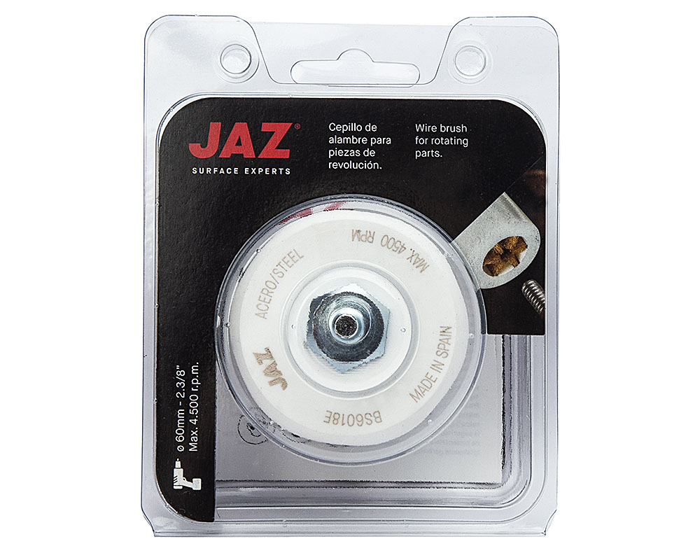 Проволочная щетка серии BS для цилиндрических деталей, труб и резьбовых соединений диаметром 18 мм. Хвостовик 6 мм. Латунированная стальная проволока 0,3 мм. Макс. обороты 4 500 об/мин.
