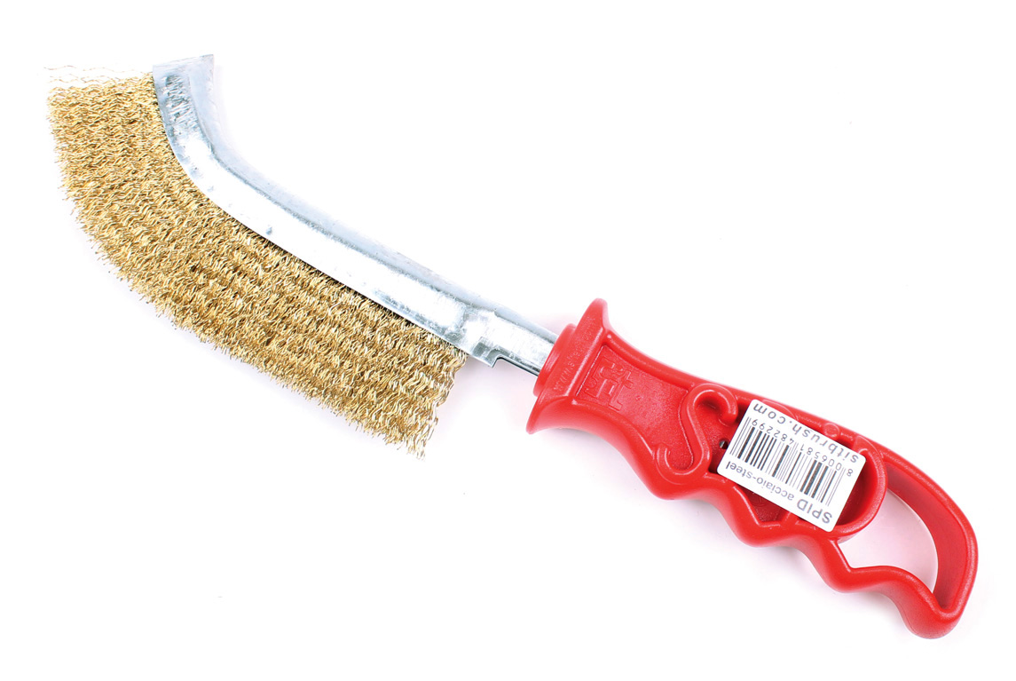 Щетка с пластиковой рукояткой и с проволокой из железа. Общая длина 245мм, рабочая длина 135мм. Цена за 1 щетку.