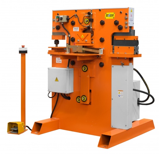 Металлообрабатывающий станок Stalex M55 — является многофункциональными пресс-ножницами, предназначен для резки, гибки, пробивки отверстий в полосовой, профильной (круглое сечение), угловой стали.