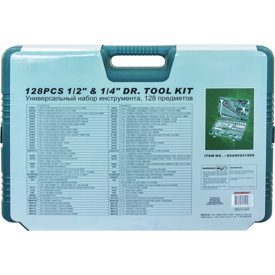 Вы можете заказать «S04H524128S (S04H524128S18) Набор инструмента универсальный 1/4″», 1/2″»DR, 128 предметов Jonnesway» в строительном гипермаркете Строймашсервис-Мск по цене 33 710 ₽ с доставкой по Москве, Московской области и всей России.