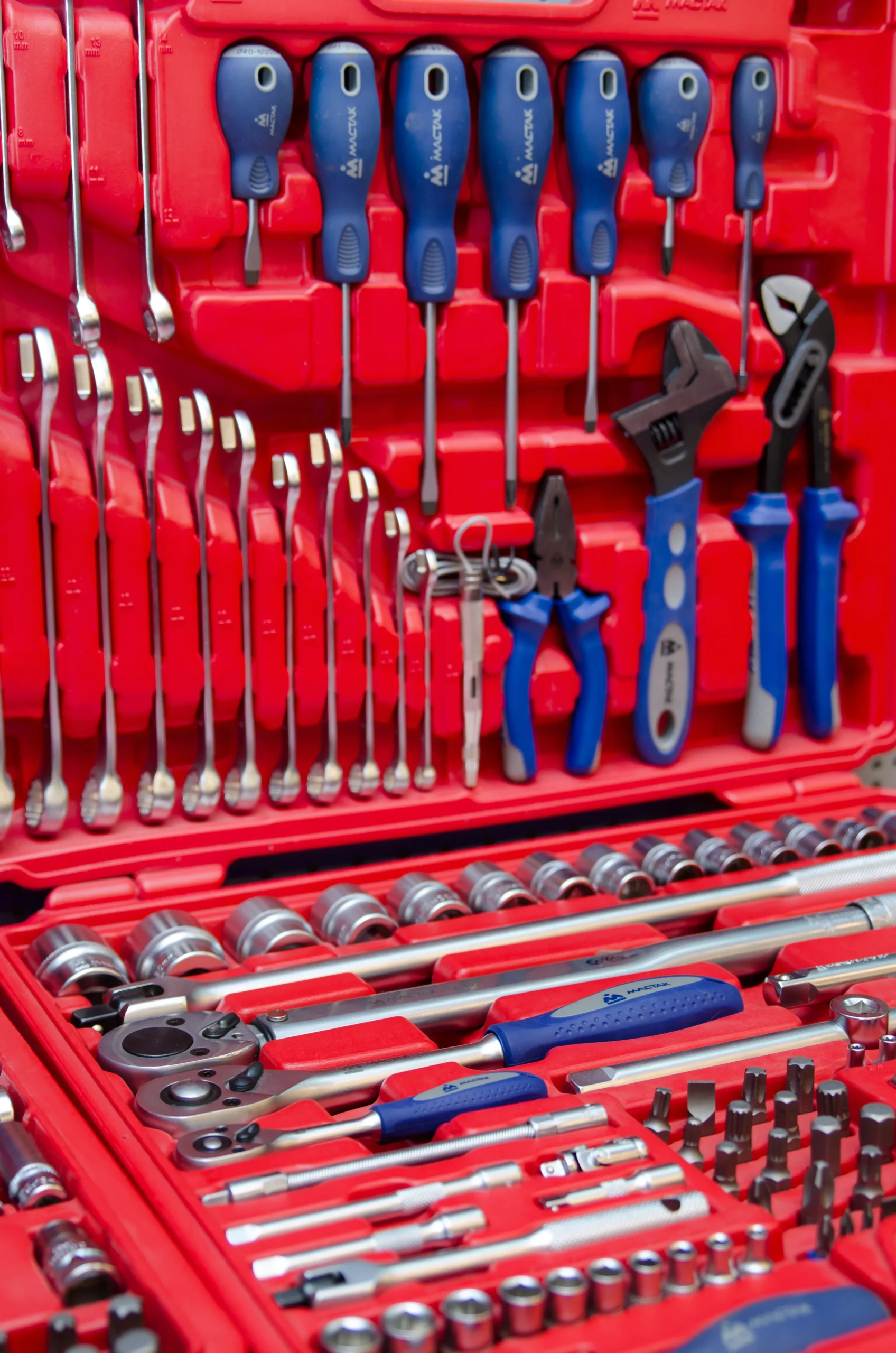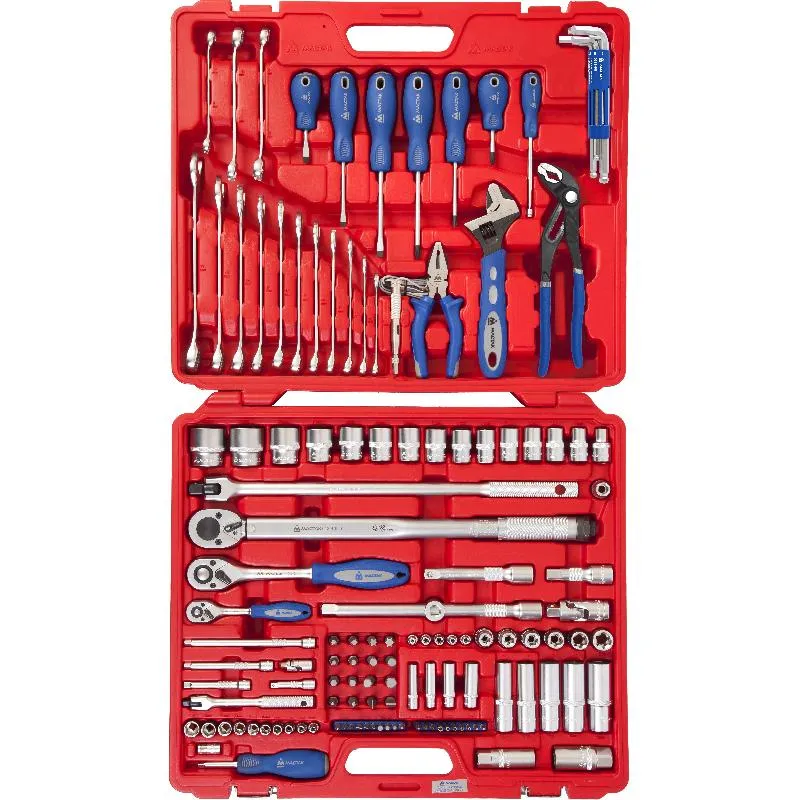 Набор инструментов МАСТАК 0-133C представляет собой исчерпывающий комплект для профессионального авторемонта и технического обслуживания. В ударопрочном кейсе из PE-HD пластика размещены 133 инструмента, покрывающие все потребности автомеханика. От торцевых головок до специализированных ключей — каждый элемент изготовлен из хромованадиевой стали с антикоррозийным покрытием.