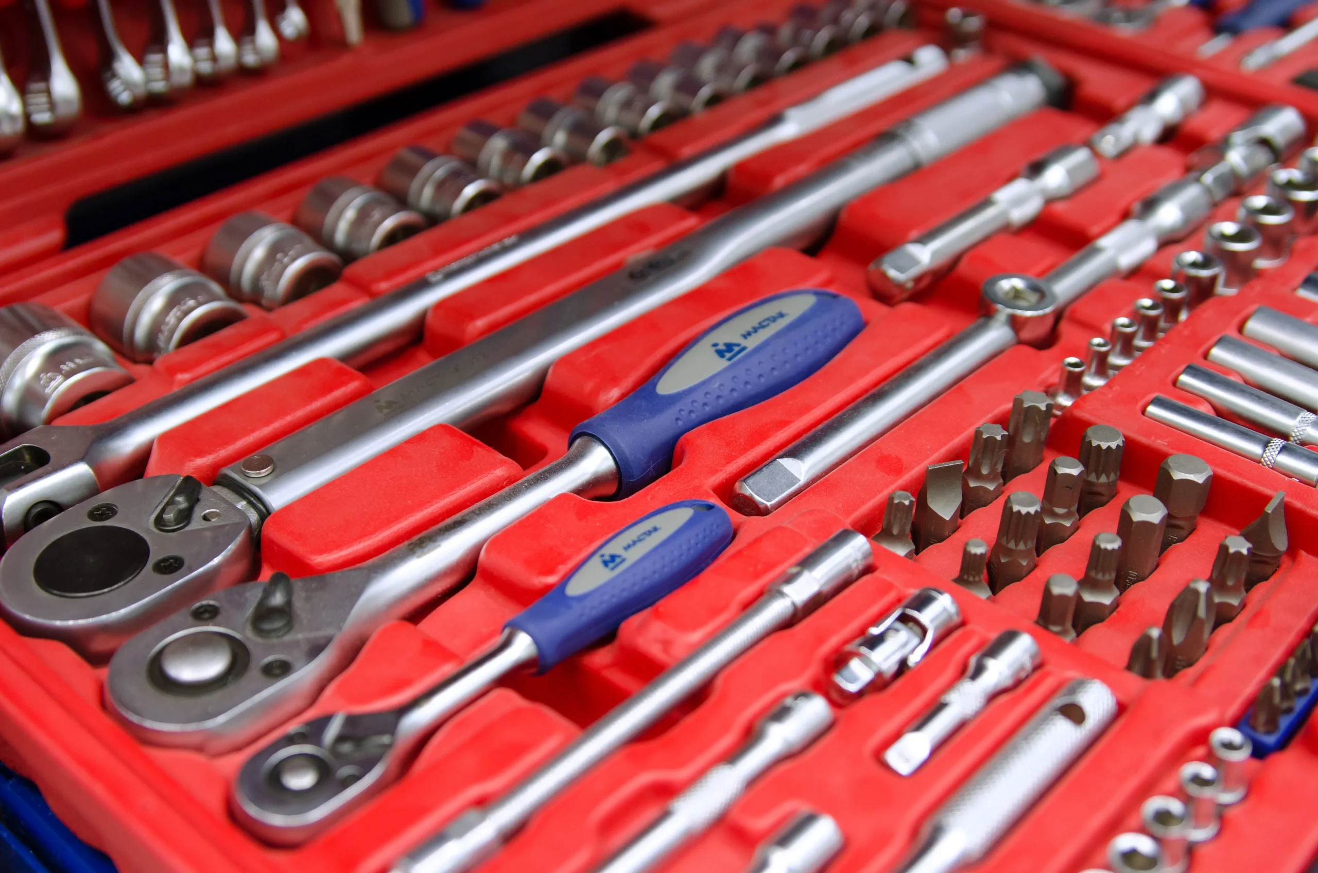 Комбинированные ключи (8-22 мм), разводной ключ 200 мм, плоскогубцы 160 мм, переставные клещи 250 мм. Набор отверток с крестовыми и шлицевыми наконечниками различных размеров.