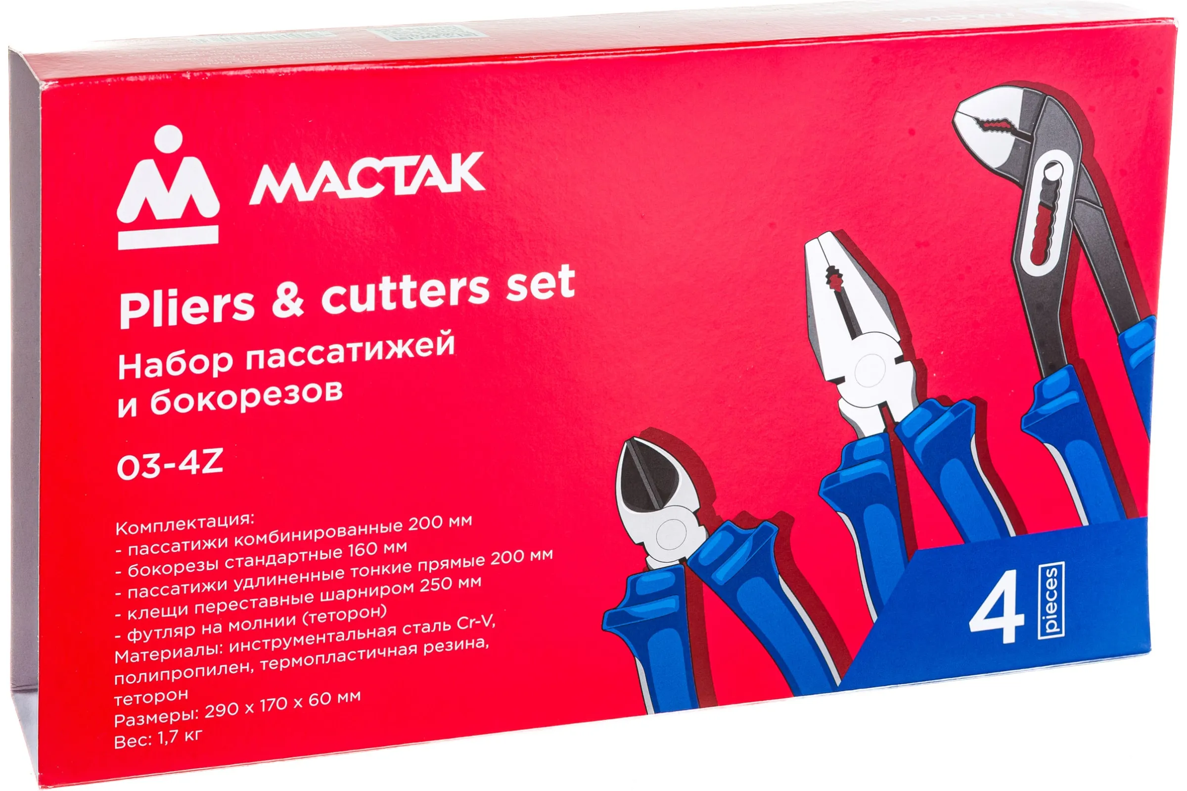 Вы можете заказать Набор пассатижей, плоскогубцев и бокорезов в футляре на молнии 4шт МАСТАК 03-4Z 062-17000 в строительном гипермаркете Строймашсервис-Мск по цене 7 970 ₽ с доставкой по Москве, Московской области и всей России.