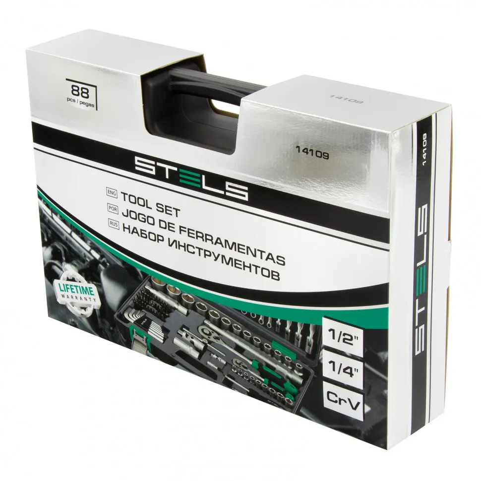 Вы можете заказать Набор инструментов, 1/2, 1/4, CrV, пластиковый кейс, 88 предметов Stels в строительном гипермаркете Строймашсервис-Мск по цене 10 990 ₽ с доставкой по Москве, Московской области и всей России.
