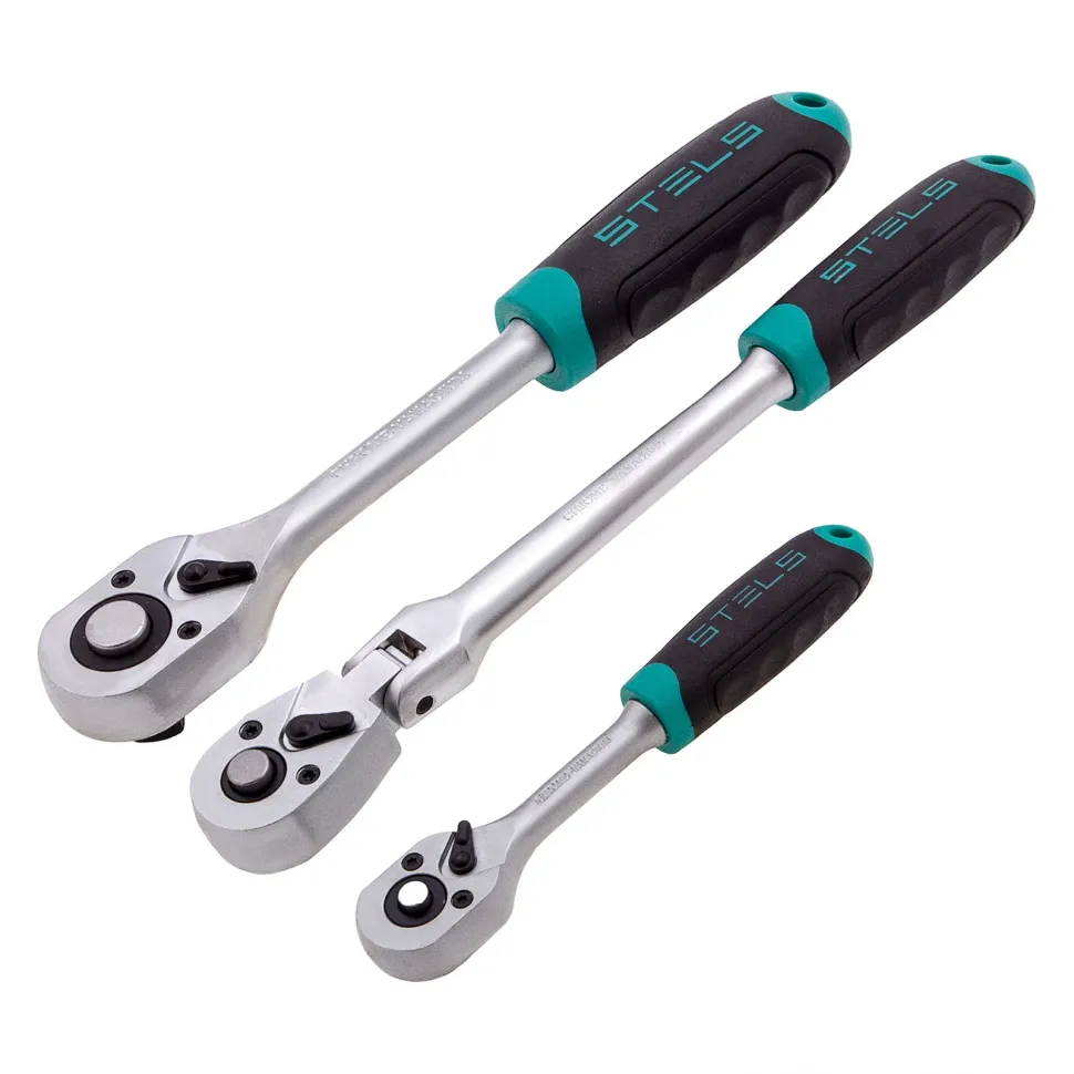 Набор комплектуется трещотками с реверсом и быстрым сбросом, трещоточный механизм имеет 72 зуба и обеспечивает исключительную мягкость и плавность в работе.