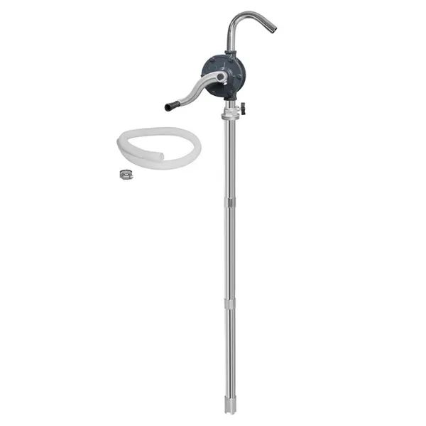 Центробежный насос для бочек Для непрерывной перекачки жидкостей на нефтяной основе низкой и средней вязкости из бочек 205 л. Производительность 0,3 л/об. В комплекте – регулируемый по высоте переходник, всасывающая труба 1040 мм и подающий шланг 1,3 м.