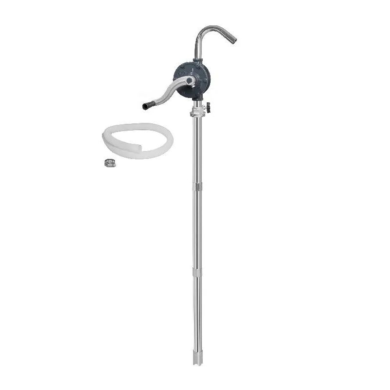 Насосы, рассчитанные на ручные привода поворотного. Для доставки непрерывного дизельного топлива, нефть, масла и других жидкостей, не агрессивных низкой вязкости, из бочки 205 л. Доставка 0,3 л революции. Включает: адаптер 2″ BSP (M), регулируемая по высоте, для крепления на барабан, труба стальная для кВт, высота-1.040 мм и гибкий 1,3 м.