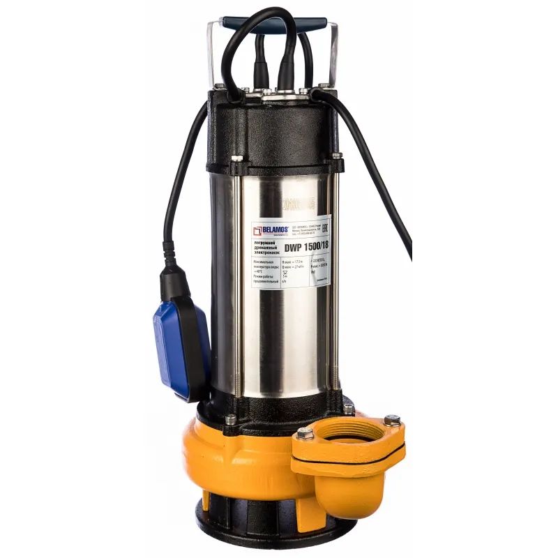 Отечественный насос BELAMOS DWP 1500/18 (27/18.5) — удобное электрическое оборудование для перекачки не только чистой, но и загрязненной воды. Погружной агрегат дренажного типа стал популярным благодаря качественной сборке, хорошей комплектации и высокой производительности.