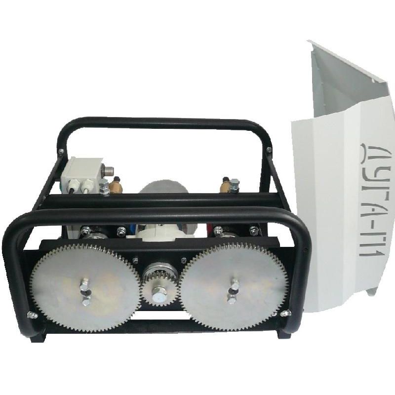 С целью минимизации стоимости установки в конструкции применён коллекторный двигатель. Недостатки такого двигателя по сравнению с асинхронными: постепенный износ щёток и контактных пластин коллектора. Решение – при необходимости, производится замена щёточного узла. Эту операцию вполне по силам выполнить самостоятельно любому человеку, владеющему отвёрткой. Коллекторный привод, применяемый в установке ДУГА® П1 – относительно недорогой, надёжный и удобный в обслуживании. Длительные испытания установки ДУГА® П1 с таким приводом на различных, в том числе, предельных режимах работы с компонентами разных производителей, подтвердили надёжность и оптимальные характеристики применяемого привода.