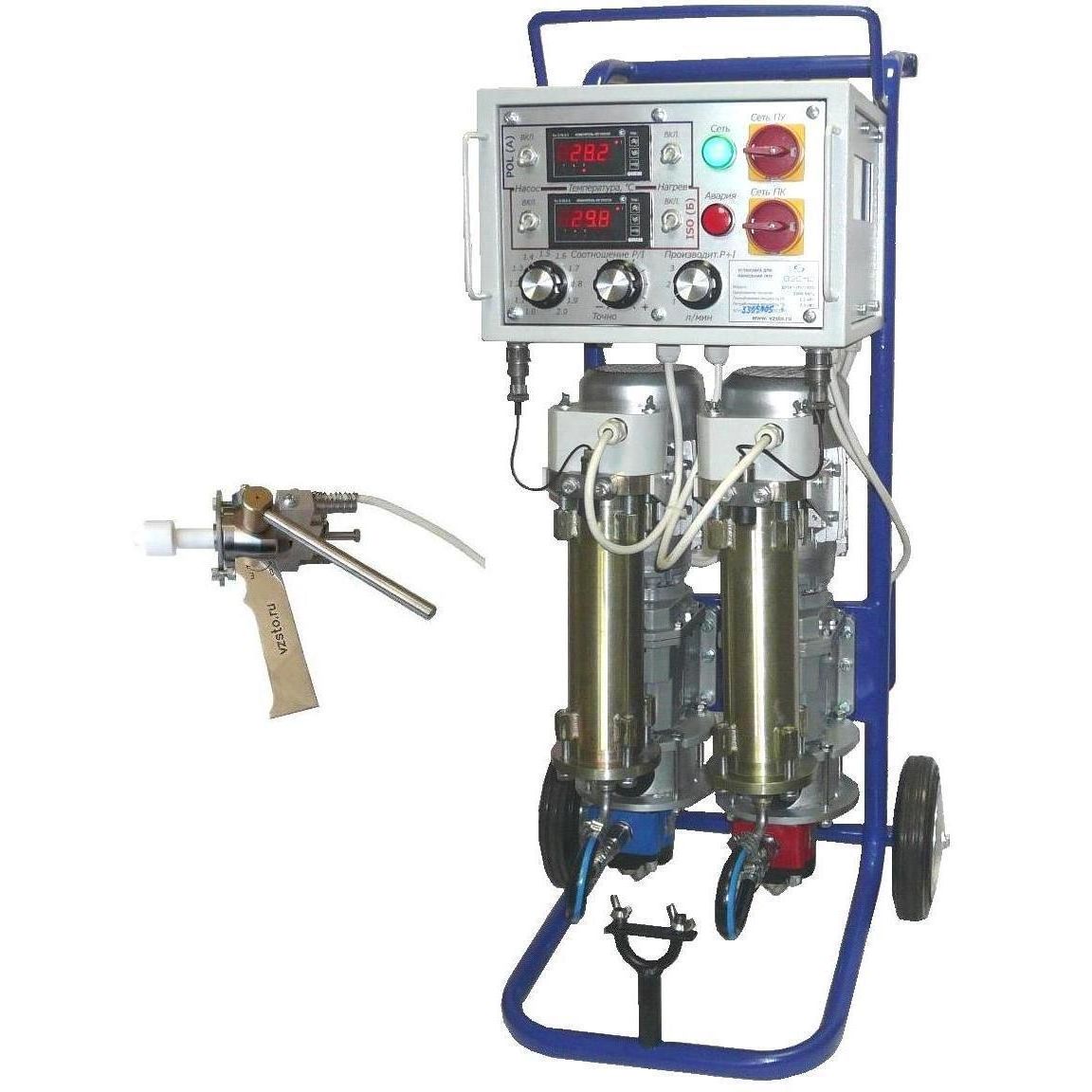 Установка выполнена на базе модели ДУГА® П5 и предназначена для профессионального напыления пенополиуретана с возможностью подогрева компонентов с соотношением А:Б от 1:1 до 1:2 (шаг 0,1 с точной подстройкой до 0,01). В установке реализованы раздельные приводы насосов компактными асинхронными промышленными электродвигателями на каждый компонент с удобной и быстрой электронной регулировкой требуемого соотношения компонентов посредством двух встроенных частотных регуляторов «Schneider». Производительность насосной станции также изменяется, при необходимости, в процессе работы простым поворотом рукоятки.