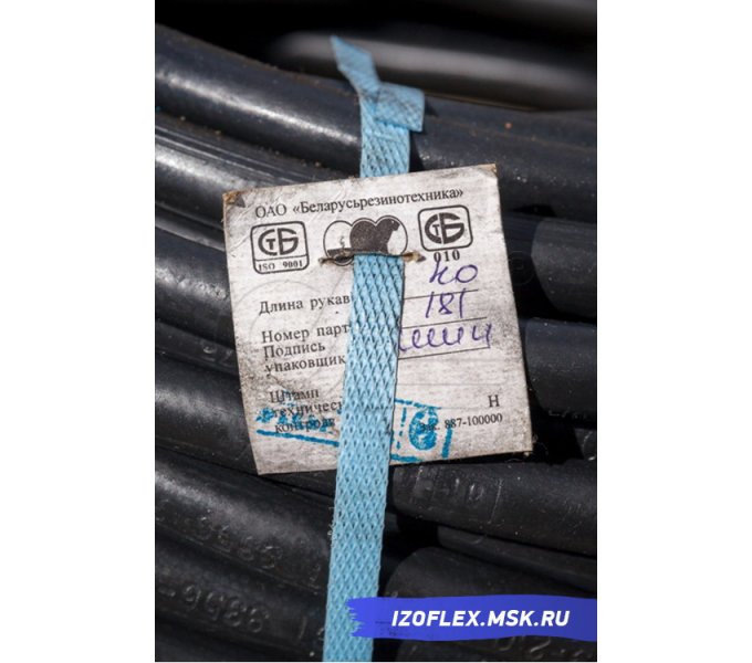 Комплект шланга представляет собой стандартный резиновый напорный газовый кислородный рукав, диаметр которого 9 мм, имеющий по всей длине (иногда с промежутками) маркировку. Последняя включает наименование производителя, класс шланга и размер диаметра, месяц и год изготовления, рабочее давление (в МПа) и указание на стандарт.