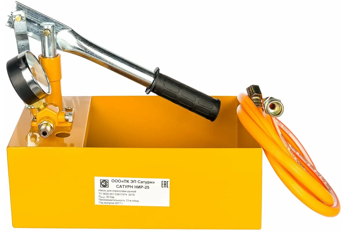 Ручной опрессовщик гидравлический САТУРН НИР-25 предназначен для быстрой проверки давления и герметичности, активно используется при проведении различных технических работ на трубопроводах, а также на сантехнических, отопительных и водопроводных системах. Может применяться в масляных, паровых и антифризных производственных установках и эксплуатироваться как насос для заполнения системы, в качестве гидропривода для сторонних устройств: домкратов, струбцин и т.д.