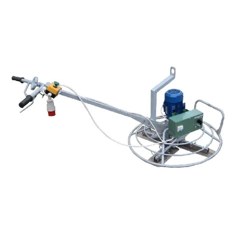 Привод представляет собой надежный циклоидальный мотор-редуктор с усиленной опорой выходного вала с двухскоростным трехфазным электродвигателем напряжением 380 В, а рабочий элемент, в зависимости от вида работ, или 4 лопасти или заглаживающий диск диаметром 880 мм. Обычно для грубого заглаживания бетонных поверхностей применяют диск, а для окончательного заглаживания – лопасти.