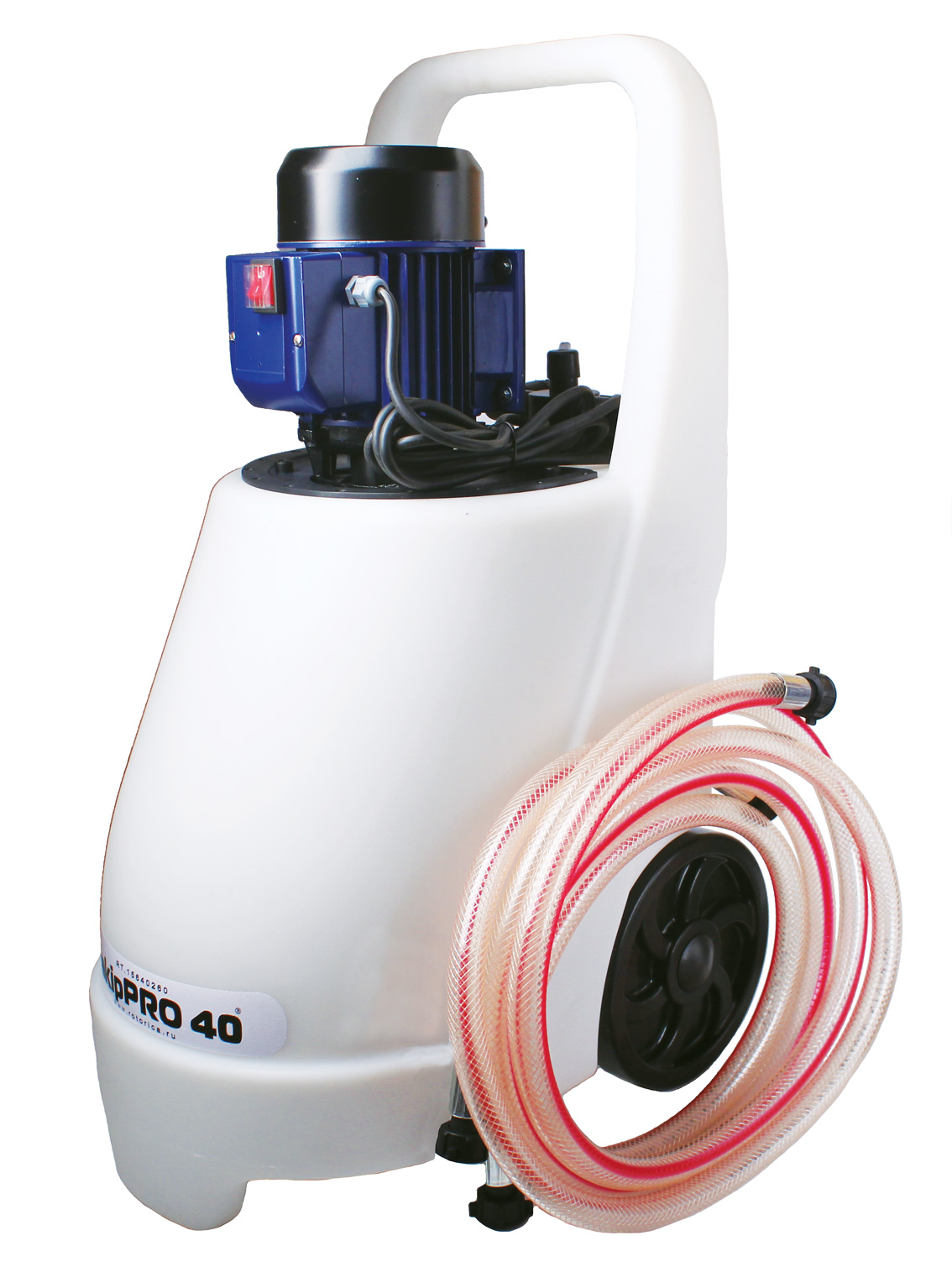 Промывочный насос для котлов, теплообменников и систем отопления. Ручной реверс. Производительность 260л/мин. Макс. температура 60 0С. Напор 10м. Емкость бака 40л. Давление до 1 бар.