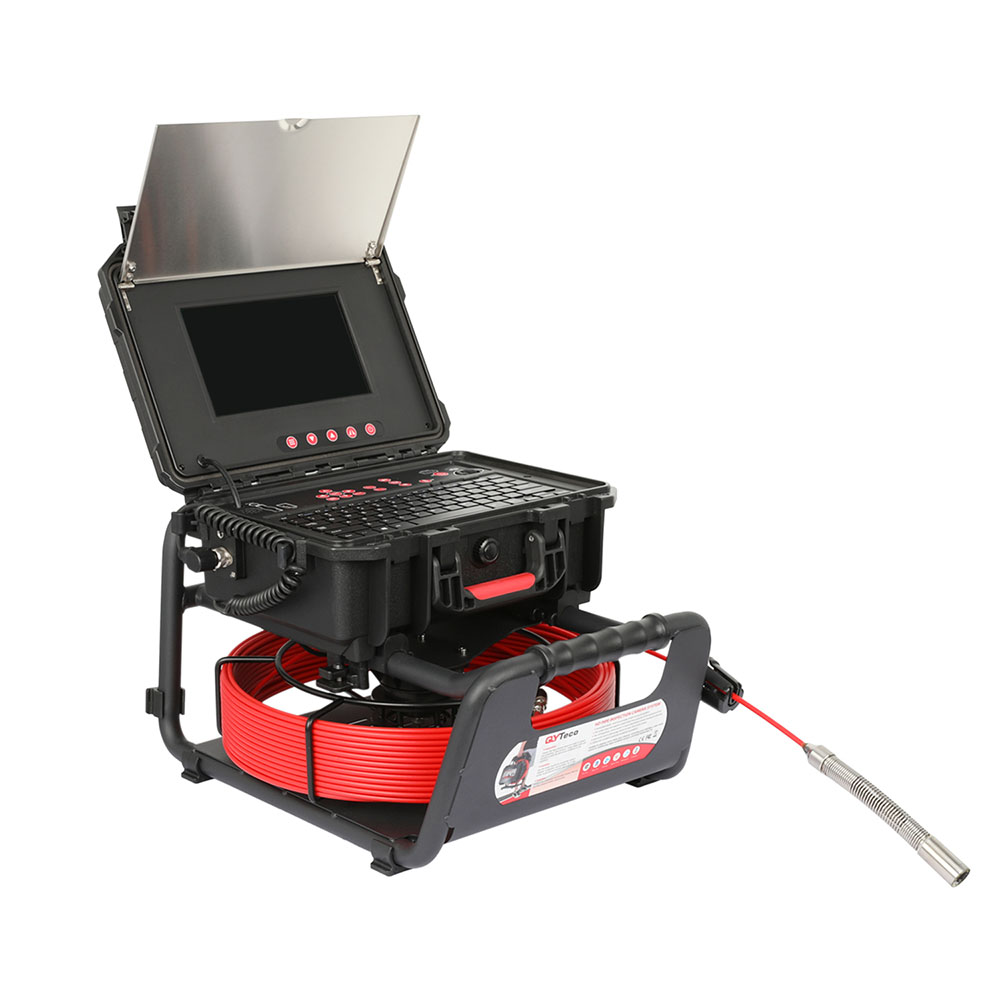 Проталкиваемая ТВ камера серии MEDIUM для осмотра труб. Длина кабеля 40м, диаметр 5.3 мм, монитор 9», головка камеры 21х45мм с разрешением 1080Р (1920х1080). Вес 8,1 кг.