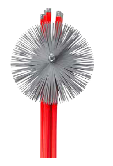 Для прочистки дымоходных труб диаметром 250мм на длину 7м (5 стержней по 1.4м). Ёршик из стали. Цена за 1 набор.