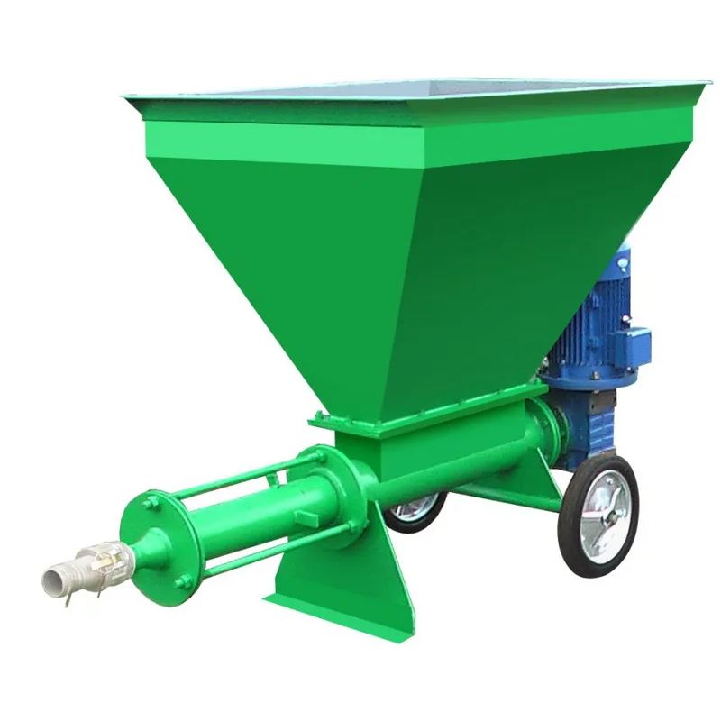 Растворонасос винтовой (героторный) СОСНА  4,6.500 — предназначен для перекачивания (напорной подачи) больших объемов жидких и пастообразных материалов, сложных многокомпонентных смесей, особо чувствительных к механическому воздействию. Простота и надежность, универсальность и низкая стоимость эксплуатации, малая энергонагруженность и большая производительность — традиционные преимущества винтовых насосов, обеспечивающие их широкое распространение на строительных площадках России и ближнего зарубежья при выполнении самых разнообразных работ, связанных с транспортировкой и подачей растворов, паст и суспензий.  Винтовой (героторный) растворонасос — это самовсасывающий насос объемного действия, рабочим органом которого является сменная героторная пара. Героторная пара, в свою очередь, состоит из эластичного статора и винтового ротора.  Винтовой (героторный) насос СОСНА  4,6.500 имеет бункер объемом 500 литров для приема материала из смесительной установки. Наличие расходного бункера насоса позволяет проводить непрерывную подачу материала при использовании смесительного оборудования циклического действия, что особенно важно при выполнении работ, перерыв в которых нежелателен либо вовсе недопустим (механическое нанесение штукатурных растворов, заполнение форм и т.д.). Для облегчения перемещения по строительной площадке насосные агрегаты оснащаются колесными шасси.