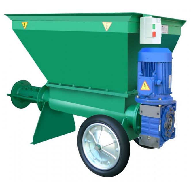 Растворонасос винтовой (героторный) СОСНА 7.1000 — практически безальтернативное оборудование для перекачивания вязких и абразивных масс, материалов, которые существенно отличны по плотности (пенобетона, полистиролбетона), ячеистобетонных смесей, а также напорной подачи сложных, многокомпонентных смесей, особо чувствительных к механическому воздействию, жидких и пастообразных масс и суспензий с волокнами или твердыми частицами, что означает многофункциональное использование этого вида строительного оборудования. Растворонасос СОСНА 7.1000 имеет бункер объемом 1000 литров для приема материала из смесительной установки. Наличие расходного бункера позволяет проводить непрерывную подачу материала при использовании смесительного оборудования циклического действия, что особенно важно при выполнении работ, перерыв в которых нежелателен либо вовсе недопустим (механическое нанесение штукатурных растворов, заполнение форм и т.д.). Конструкция подающей части винтовых растворонасосов включает в себя героторную пару и питающий шнек. Подвижный элемент рабочей пары, однозаходный винт (ротор), совершает планетарное движение в обойме (статоре). Обойма имеет внутреннюю двухзаходную винтовую поверхность с шагом в два раза больше шага винта. Находясь в постоянном контакте, обойма и винт образуют несколько замкнутых полостей по длине винт — обойма. При вращении винта полость со стороны всасывания увеличивается в объеме и в ней создается разряжение, под действием которого осуществляется заполнение полости транспортируемой средой. Данная конструкция обеспечивает максимально бережное перемещение штукатурных, пенобетонных и полистиролбетонных растворов. Винтовые растворонасосы при небольших габаритных размерах обеспечивают высокую производительность строительных работ, позволяют производить нагнетание смесей в пустоты, подавать смеси для самонивелирующихся наливных полов, подачи и нанесении штукатурных растворов.Данная модель — стационарная (без колес)