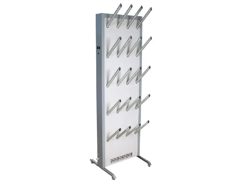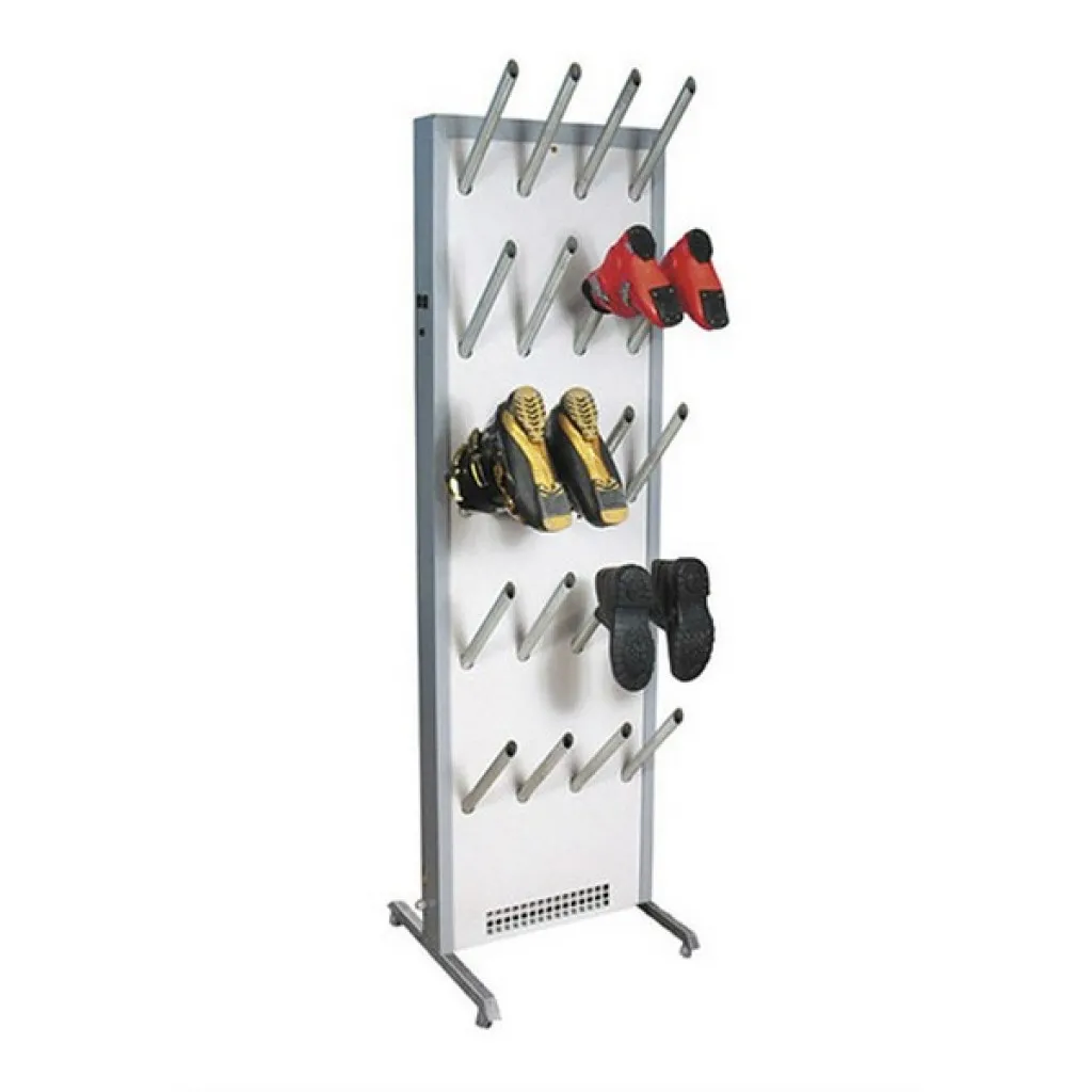 Промышленный модуль для сушки обуви – электрический прибор для быстрой и качественной просушки и обеззараживания сразу нескольких пар. Такой прибор позволяет бережно ухаживать за вещами и значительно увеличивает их срок использования. Представляет собой стойку с вешалами, на которые подается подогретый воздух. Некоторые модели оборудованы дополнительным ультрафиолетовым излучателем. Модуль удобен для использования в помещениях с высокой влажностью, промышленных предприятиях, спортивных центрах, точках общепита и во многих других областях.