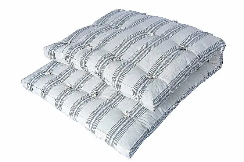 Основное сырьё набивки — хлопковая вата, что исключает возникновение аллергической реакции. Хлопок предварительно очищен от посторонних примесей и обработана текстильным оборудованием. Чехол сшит из тика. Это плотная натуральная ткань, которая предназначена специально для пошива наматрасников, наперников и тентов.