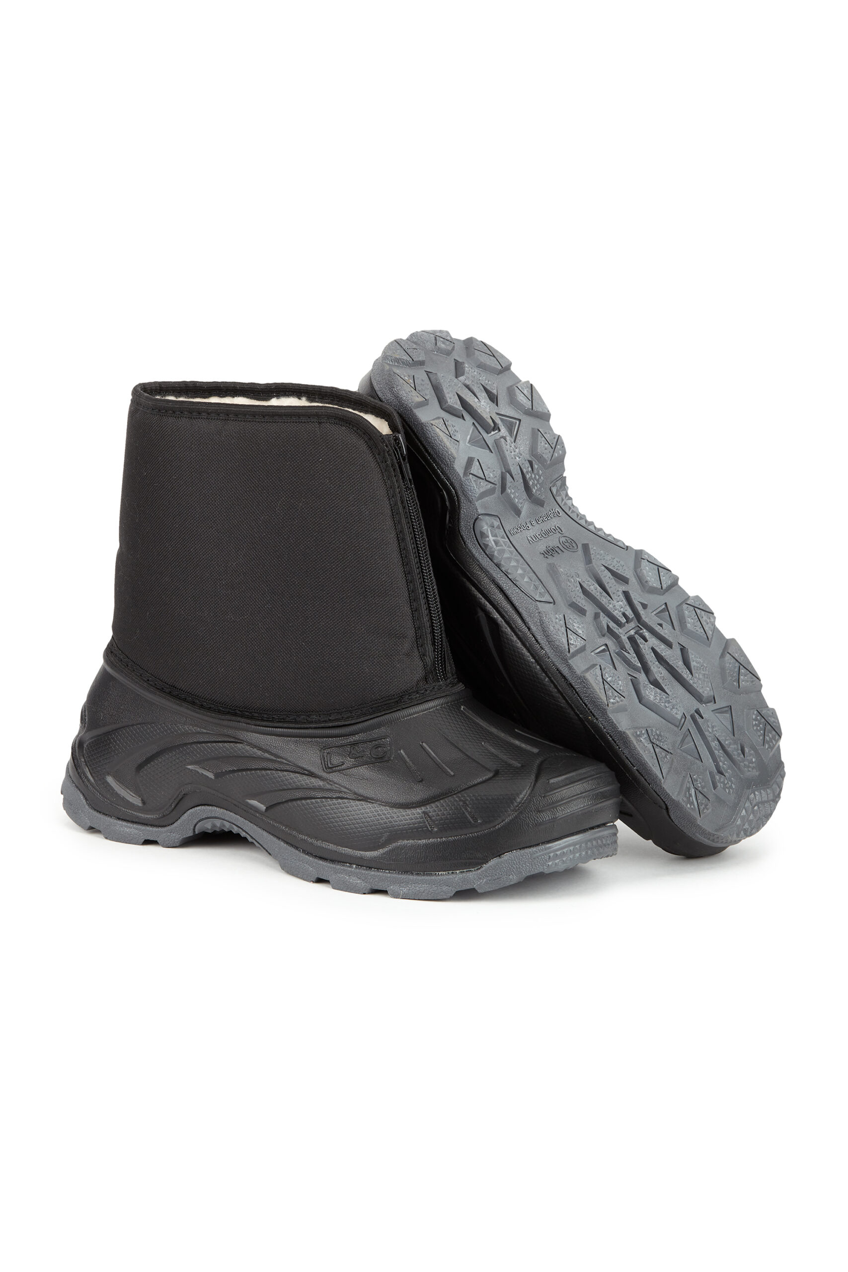 Ботинки мужские универсальные утепленные предназначены для эксплуатации в зимний и демисезонный периоды. ? Материал: нижняя часть обуви — галоша выполнена из облегченного морозостойкого полимера ЭВА с накладкой из ТЭП, обеспечивающей долговечность и защищающей от скольжения, верх обуви изготовлен из водоотталкивающего материала Оксфорд.? Подкладка: из искуственного меха.? Особенности конструкции: ботинки надежно фиксируются на ноге при помощи застёжки-молнии, подошва имеет глубокий протектор, что позволяет уверенно чувствовать себя на скользких поверхностях.