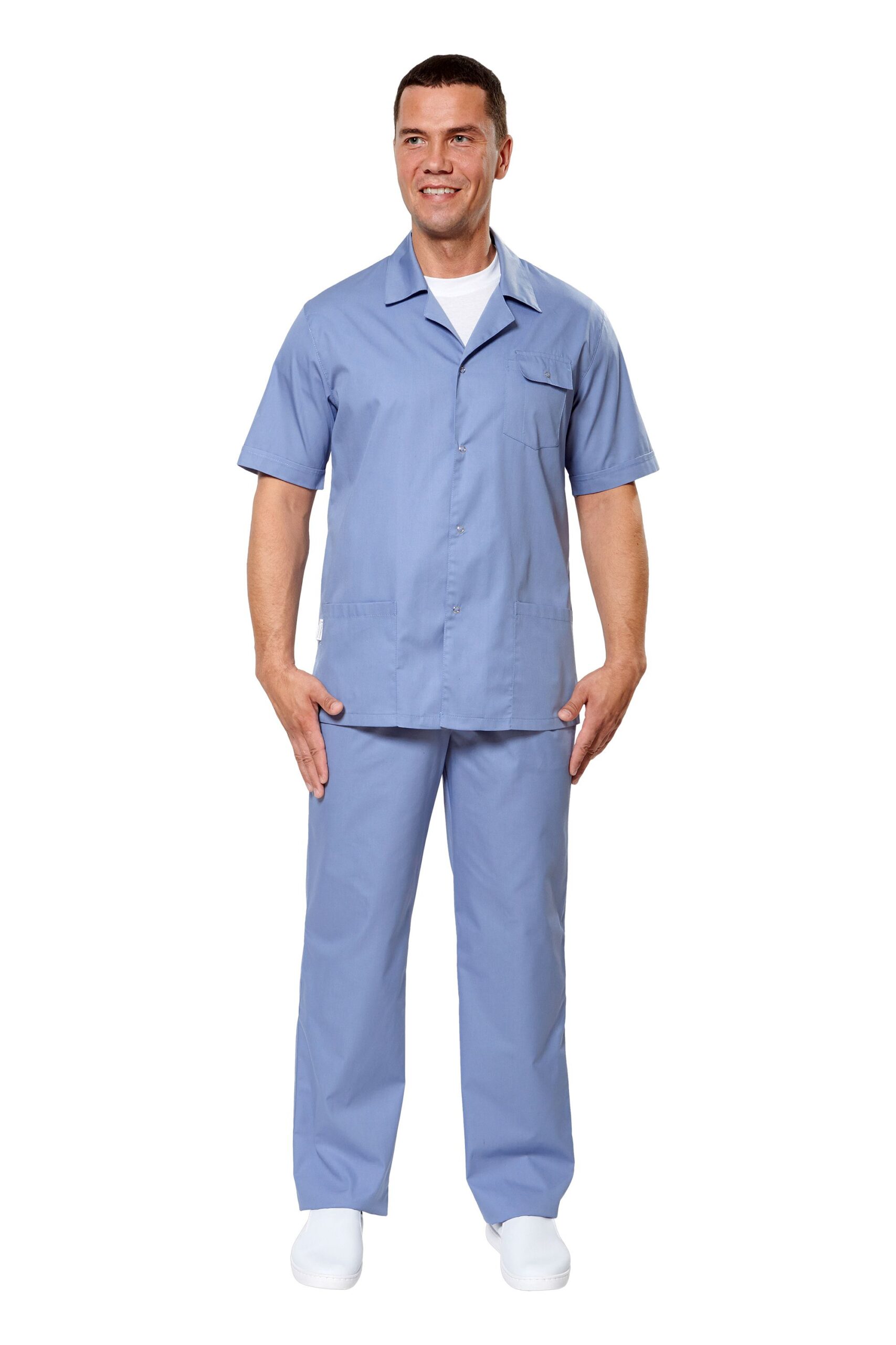 Куртка прямого силуэта с короткими рукавами, с отложным воротником и центральной застежкой на кнопки. На спинке складки, обеспечивающие свободу при движении. Два нижних кармана и один нагрудный карман с клапаном и с отделением для ручки.