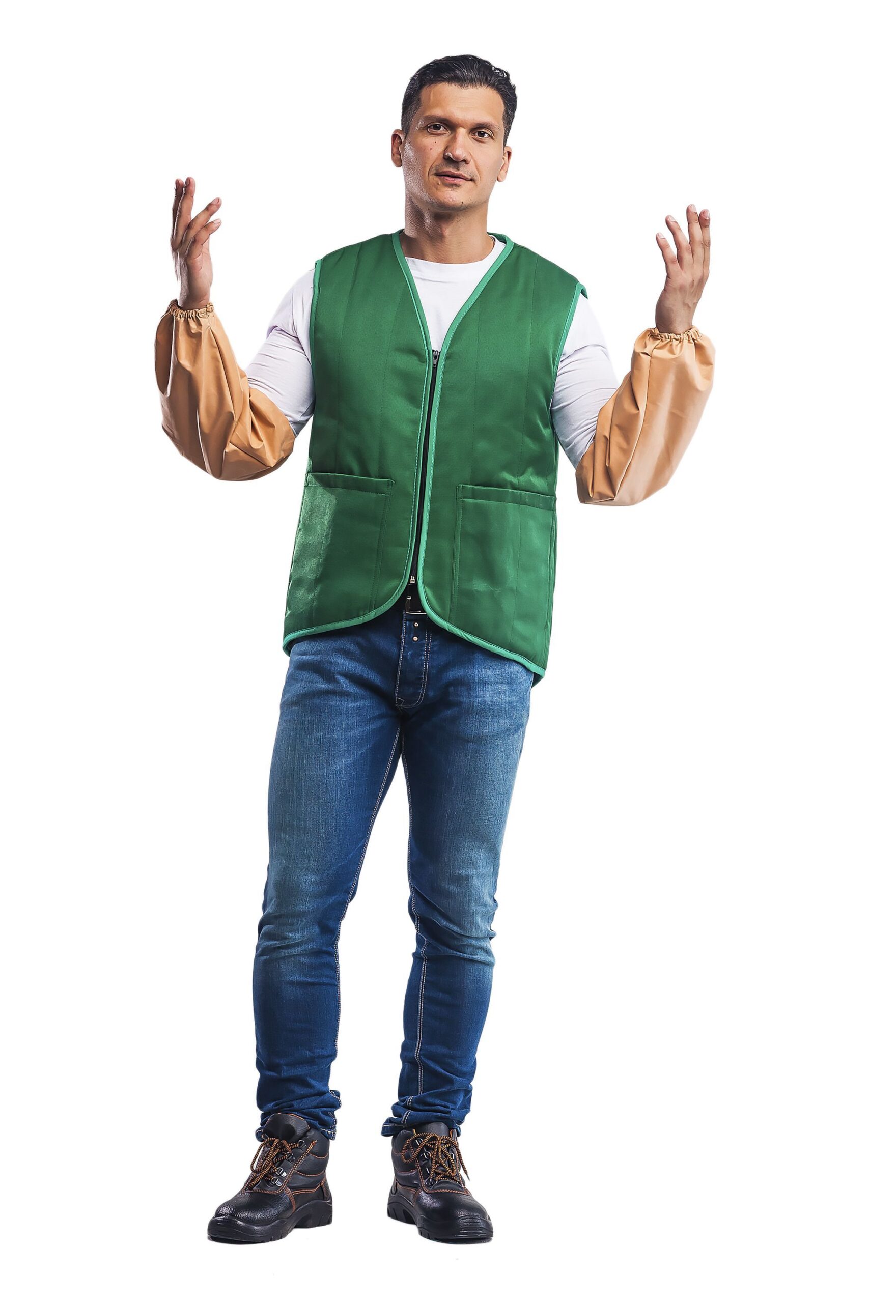 Нарукавники из прорезиненной ткани рекомендуются для защиты от влаги и нетоксичных веществ ? Нарукавники длиной 38 см, шириной от 17 до 25 см ? Для фиксации на руке верхний и нижний край нарукавников обработаны элестичной лентой