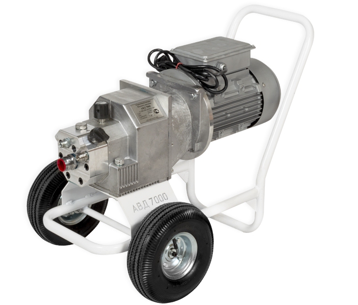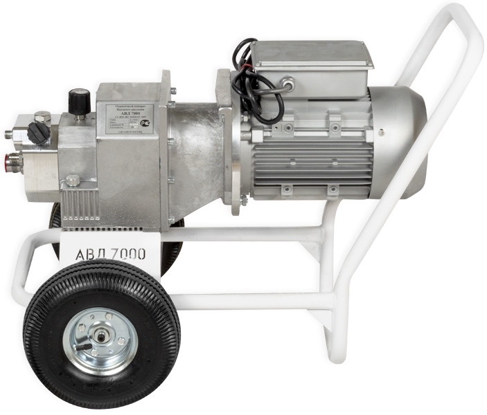 АВД 7000, широко распространён по всей территории нашей страны, ближнему зарубежью, а также странам Европы, все окрасочные аппараты высокого давления, сделанные в Евросоюзе, имеют в составе по несколько запчастей от АВД 7000 (Всасывающий клапан, перепускной клапан, регулятор давления, нагнетательный клапан). Качество запчастей и расходных материалов окрасочного аппарата 7000 позволяют говорить о его надежности и долговечности. Окрасочный аппарат АВД 7000 с электродвигателем 220В более универсален по сравнению с АВД 7000 НА, его можно подключить в любую розетку. Все окрасочные аппараты АВД 7000 сертифицированы и на каждый окрасочный агрегат дается гарантия 12 месяцев. Что может окрасочный аппарат АВД 7000 220В: окраска фасадов зданий, окраска подъездов многоэтажных жилых домов, окраска в коммунальном хозяйстве, окраска градирен, покраска вышек сотовой связи, покраска ЛЭП, окраска складов, окраска известью, побелка, покраска ЖД вагонов, окраска контейнеров, покраска металлоконструкций, применение в малярных цехах и т. п.