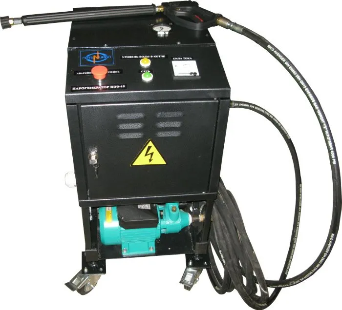 Парогенератор ПЭЭ-15АМ (380) (черн.котел) нужен для производства насыщенного водяного пара, чтобы очищать поверхностей автотранспортных средств. С помощью этой модели проходит: