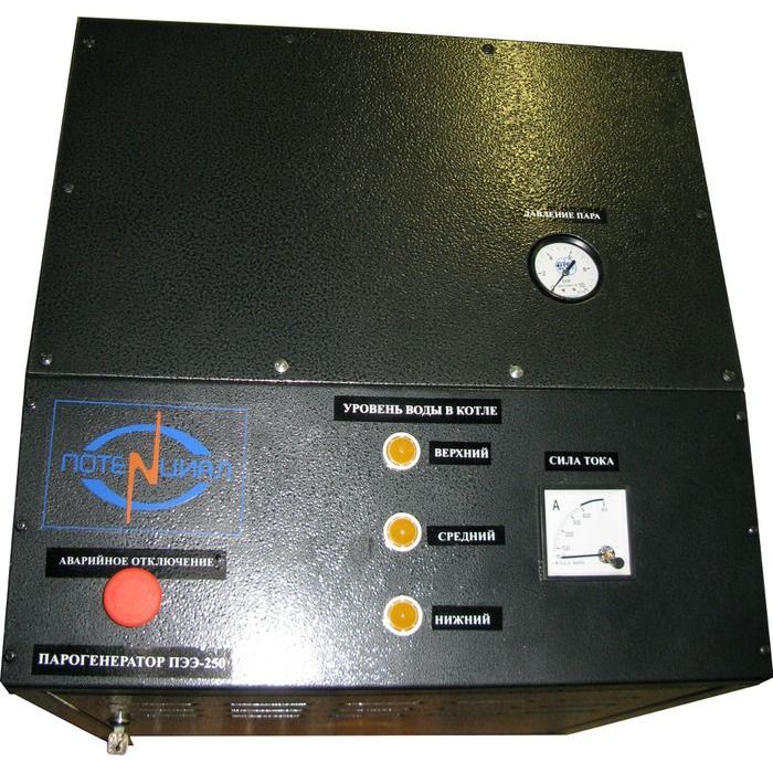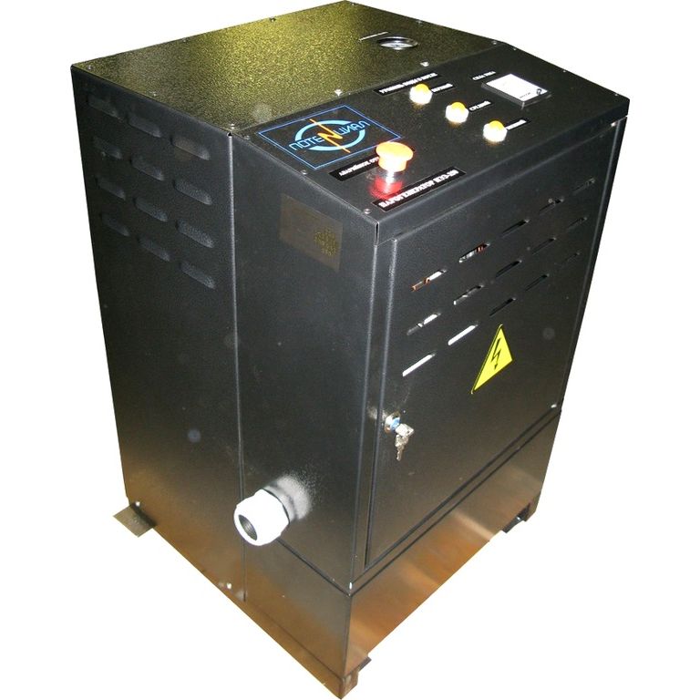 Двухступенчатый парогенератор серии ПЭЭ-50/100Н – электрический катодный прибор для выработки насыщенного пара температурой до 160ºС. Функциональный составные части парообразующей установки смонтированы на стальном каркасе из прокатного профиля. Снаружи остов закрывают защитные накладки. Органы управления и приборы контроля находятся на верхней крышке.
