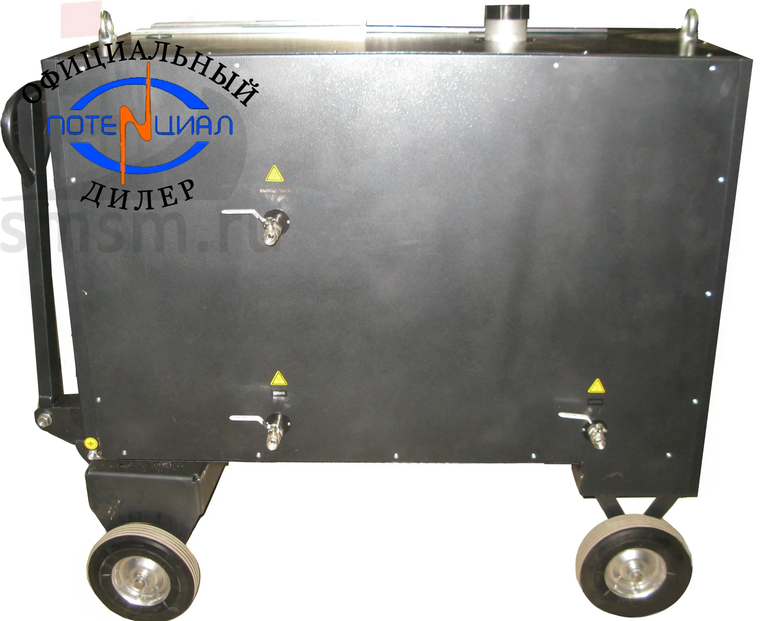Парогенератор предусматривает утепленный кожух, поэтому его можно использовать при экстремально низких температурах. Оборудование надежно защищено от пыли и влаги. В комплект поставки входит также встроенный водяной бак и подогрев, 10-метровый паропровод и монтажные болты. Для мобильности генератор можно укомплектовать колесами или салазками. Максимальное рабочее давление 0,55 МПа, объем котла – до 25 л.