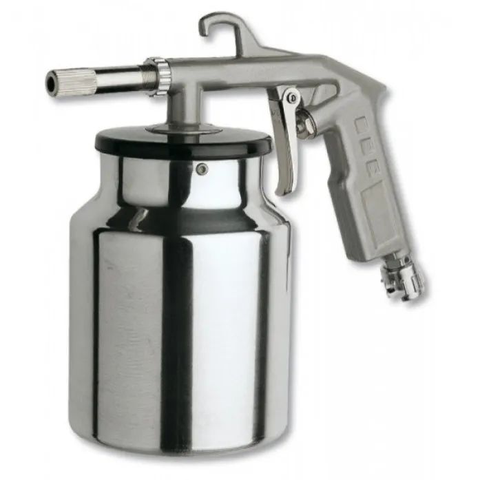 Пескоструйный пистолет ABAC 756062. Предназначен для небольших пескоструйных работ. Работает от компрессора. Имеет нижний бачок для абразива.