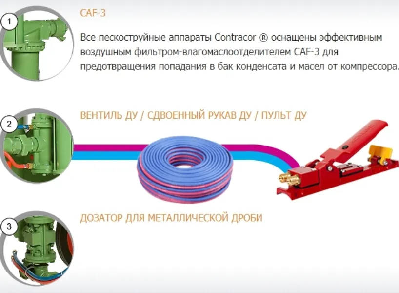 - Конструкция включает в свой состав удобный дозатор типа SGV, предназначенный для металлической дроби.