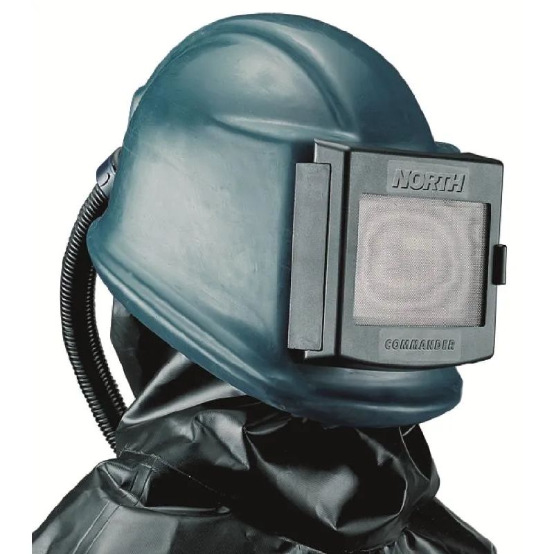 Шлем абразивоструйщика Commander. Легкий, обрезиненный, комфортабельный шлем предназначен для любого вида абразивоструйных работ. Конструктивное исполнение обеспечивает постоянный обдув стекла, предотвращая запотевание. Резиновое покрытие делает шлем Commander стойким против абразивного износа и повышает шумоизоляцию. Шлем Commander оснащён регулятором давления, индикатором подачи сжатого воздуха и плотной пелериной.