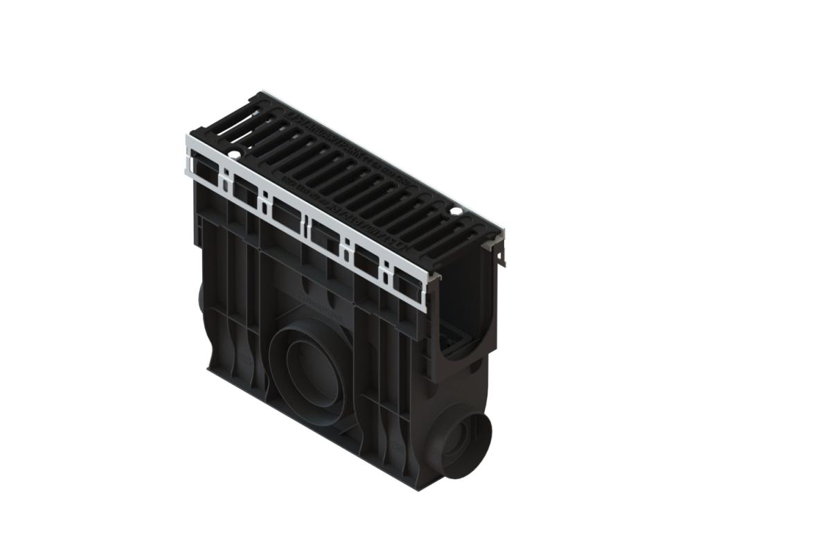 HTML:Пескоуловитель пластиковый Drive DN100 c решеткой из высокопрочного чугуна класса нагрузки С250. Используется для завершения линии лотков при сбросе воды в канализацию, предназначен для сбора песка и мелкого мусора из ливневых стоков, которые попадают внутрь сквозь водоприемную решетку. Применяется для отведения стоков на участке где возможен наезд легкового автомобиля. Поставляется комплектом.