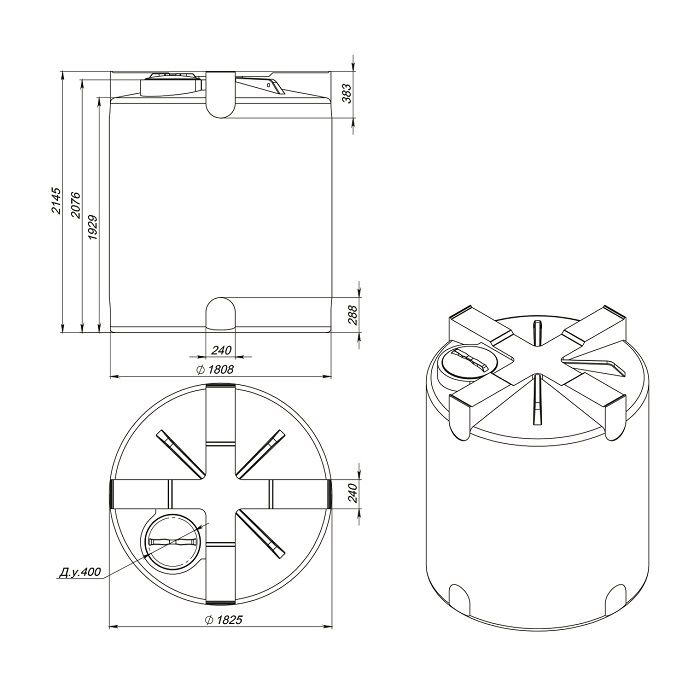 Полипропиленовая емкость весит 120 кг, ее можно эксплуатировать при температуре от -30 до +60 градусов.