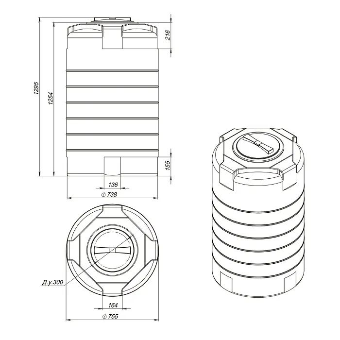 Объем цилиндрической емкости – 500 л. Высота составляет 1295 мм. Изделие выполнено из сверхпрочного пластика. Материал выдерживает неблагоприятные факторы внешней среды, включая колебания температур. Тем не менее, лучше не хранить емкость постоянно под прямыми солнечными лучами. Резервуар можно купить для использования на даче или в загородном доме в качестве септика. Он подходит для хранения не только воды и пищи, но также топлива.