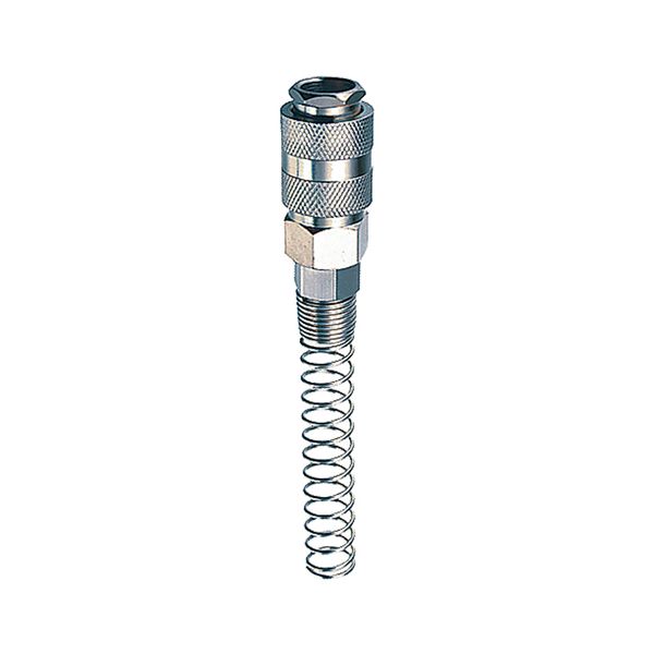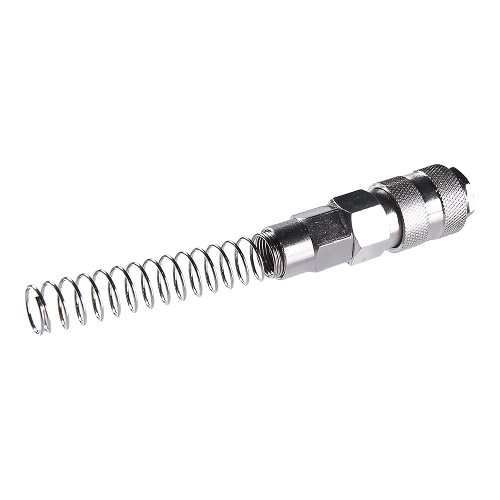 Разъемное соединение рапид-пружинка для подключения компрессора через шланг к пневмоинструменту. Пружина не позволяет шлангу деформироваться и перегибаться в месте соединения.