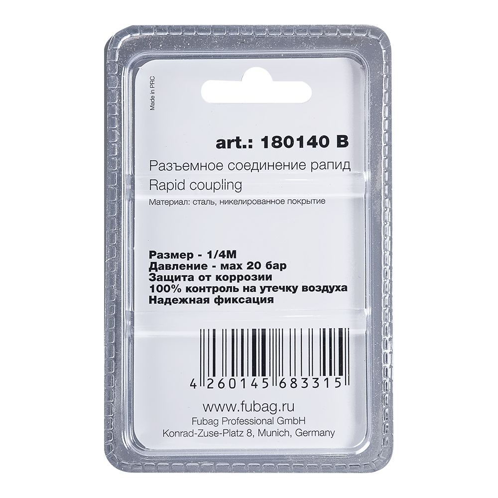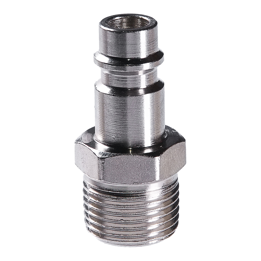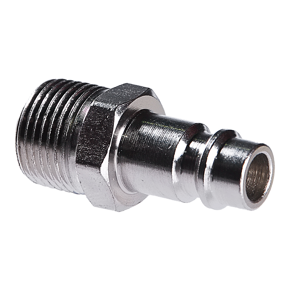 Разъемное соединение для подключения компрессора к пневмоинструменту. Переход с с резьбы наружной 1/4″ папа на быстросъемное соединение рапид. Поставляется в блистере.