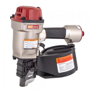 Гвоздезабивной пневматический пистолет CN70R — это бюджетная модель инструмента для забивания барабанных гвоздей производства Тайвань, «стреляющая» барабанными гвоздями в диапазоне от 45 мм до 70 мм. Применяется в первую очередь при производстве паллет (поддонов), а также при изготовлении и ремонте других изделий из дерева, таких как тара, ящики и упаковка, в специально организованных местах как внутри помещений, так и на открытом воздухе с переменной влажностью и минусовой температурой. Высокая скорость — три выстрела в секунду — позволяет увеличить производительность в сравнении с ручным трудом в 4 раза. Пневматический нейлер CN70R надежен и прост в эксплуатации, работа с ним не требует специальных знаний и навыков. Дополнительную безопасность труда обеспечивает наличие предохранителя от «случайного» выстрела. Используемые барабанные гвозди на проволочной сцепке — гладкие, а также с винтовой и кольцевой насечкой.