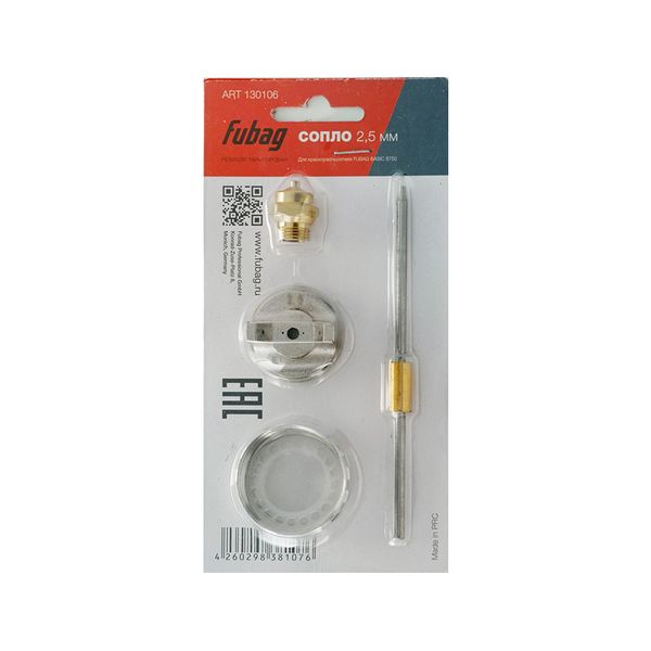 Сопло FUBAG 130106 используется при работе краскопультом FUBAG BASIC S750. Сопло предназначено для распыления лакокрасочных материалов ровным слоем на поверхность. В комплекте: игла, головка, сопло. Диаметр сопла — 2.5 мм.